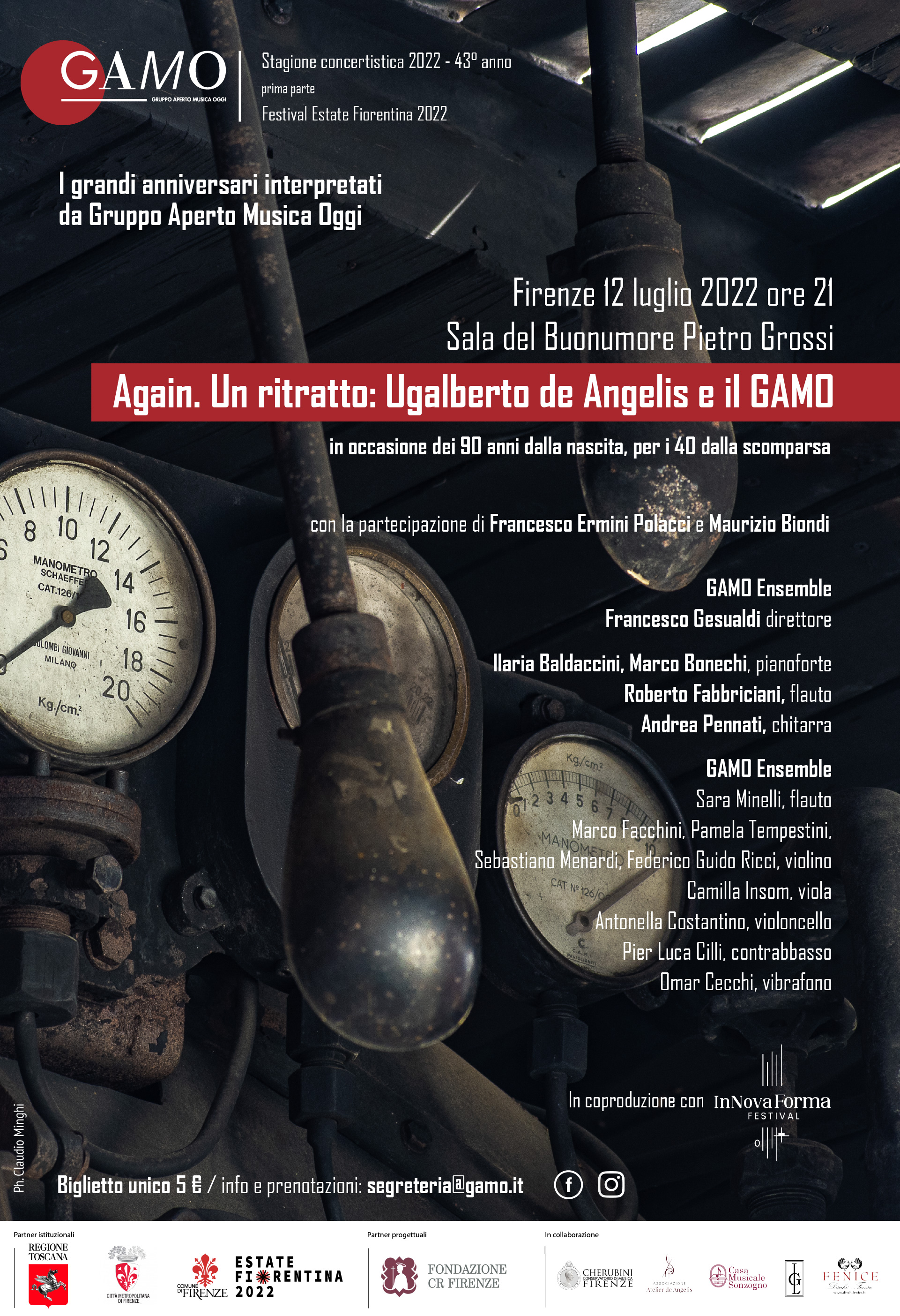 La Stagione GAMO n. 43 - I grandi anniversari interpretati dal Gruppo Aperto Musica Oggi, Festival Estate Fiorentina 2022 - si apre con un concerto dedicato al compositore Ugalberto De Angelis in occasione dei 90 anni dalla nascita e dei 40 dalla morte.