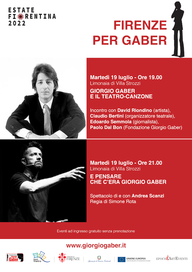 A supporto dell’evento, lo stesso giorno, per iniziativa della Fondazione Gaber, prende il via nel capoluogo toscano la manifestazione “Firenze per Gaber”, sulla falsariga di quanto già sperimentato in altre città italiane, prima fra tutte Milano. Un doppio imperdibile appuntamento avrà luogo nella suggestiva Limonaia di Villa Strozzi: alle 19.00 l’incontro “Giorgio Gaber e il Teatro-Canzone”, alle 21.00 lo spettacolo “E pensare che c'era Giorgio Gaber” di e con Andrea Scanzi.