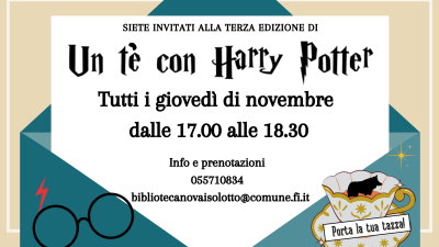Tutti i giovedì di novembre alle ore 17 letture e giochi in scatola a tema Harry Potter, accompagnati da una tazza di tè.