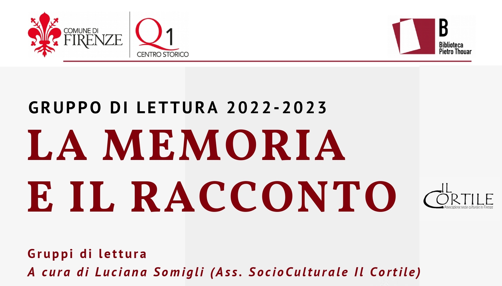 Il gruppo di lettura “La memoria e il racconto” è un appuntamento storico della Biblioteca Thouar, nato in collaborazione con l’associazione SocioCulturale “Il Cortile”.