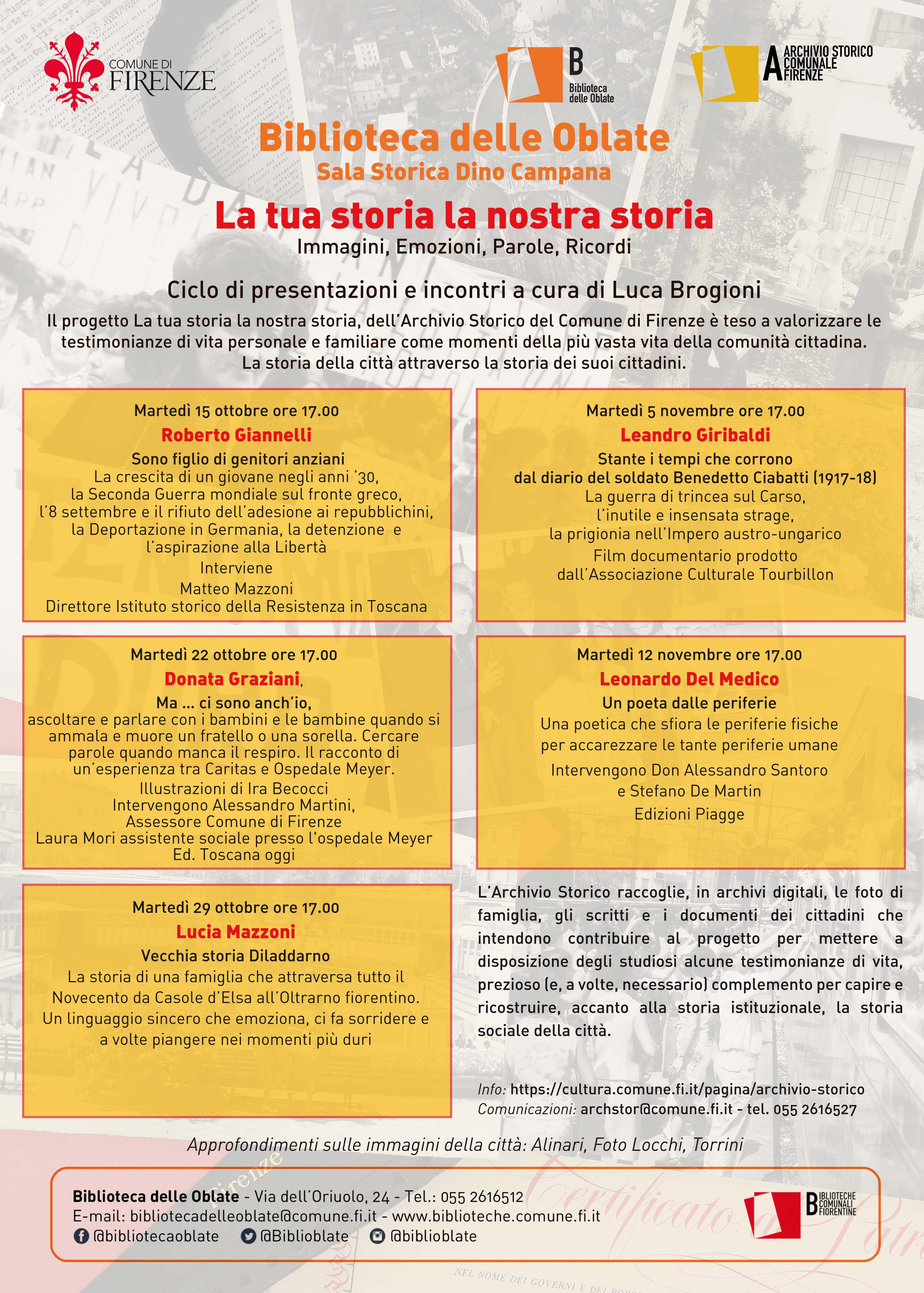 Il progetto La tua storia la nostra storia, dell’Archivio Storico del Comune di Firenze è teso a valorizzare le testimonianze di vita personale e familiare come momenti della più vasta vita della comunità cittadina.