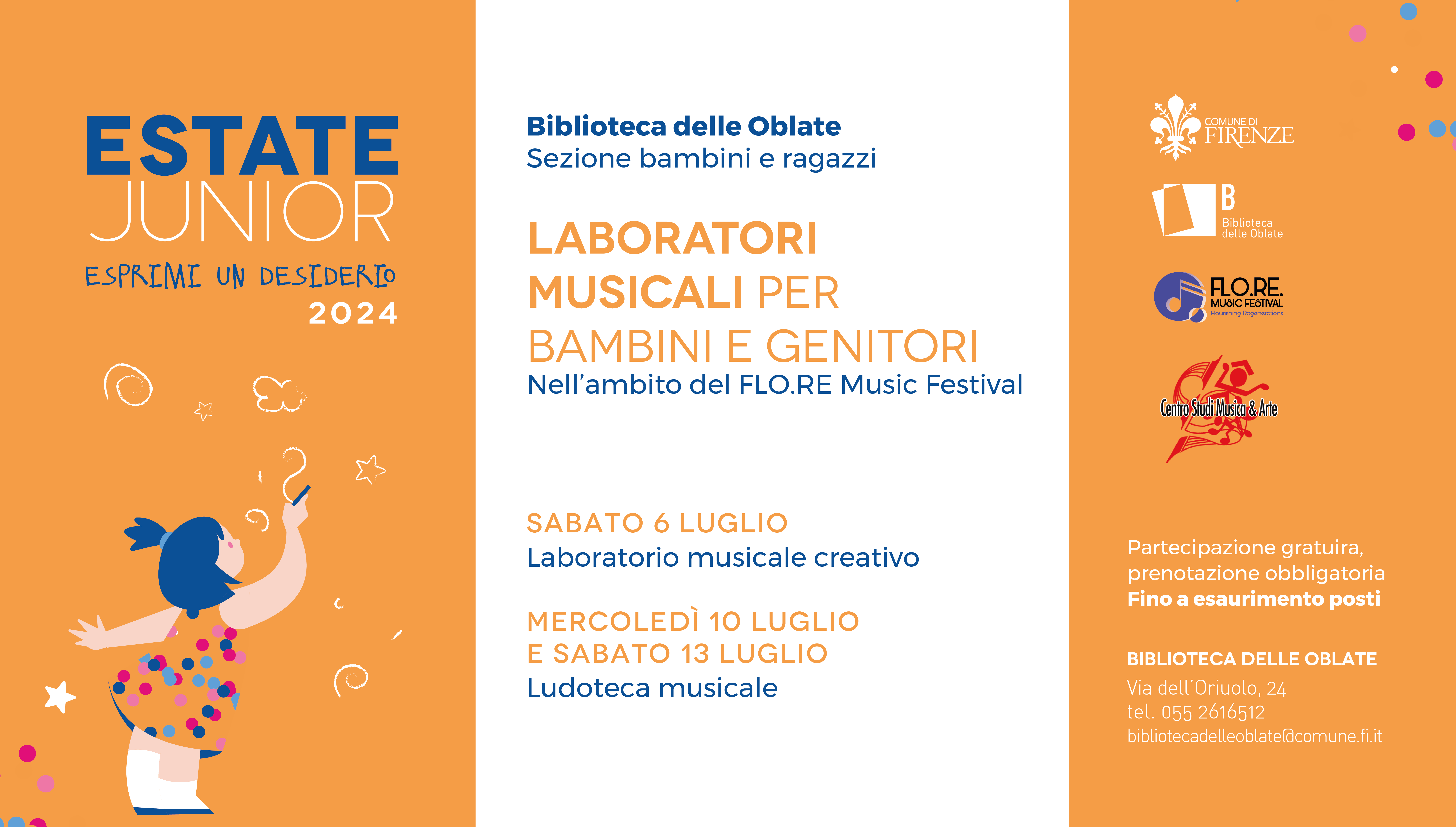 Nell’ambito del FLO.RE. Music Festival, la Sezione Bambini e Ragazzi della Biblioteca delle Oblate ospita tre laboratori musicali a cura del Centro Studi Musica & Arte.