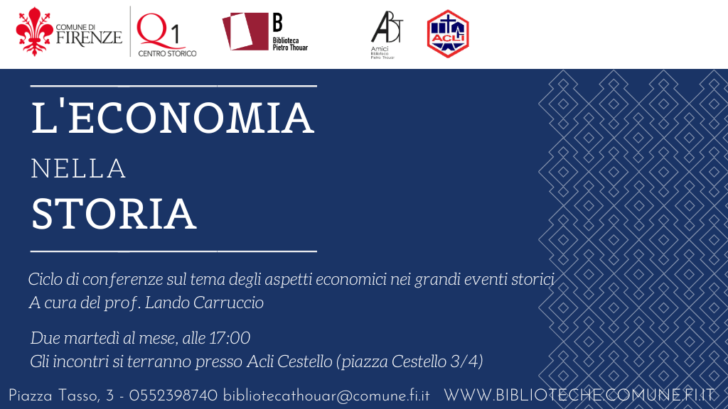 Ciclo di conferenze dedicate agli aspetti economici nei grandi eventi storici presso Acli Cestello in collaborazione con la Biblioteca Pietro Thouar