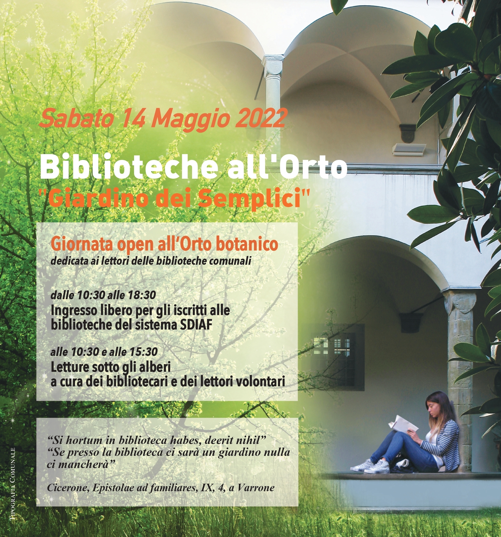 Sabato 14 maggio dalle ore 10.30 letture all'Orto Botanico, in collaborazione con la Biblioteca delle Oblate