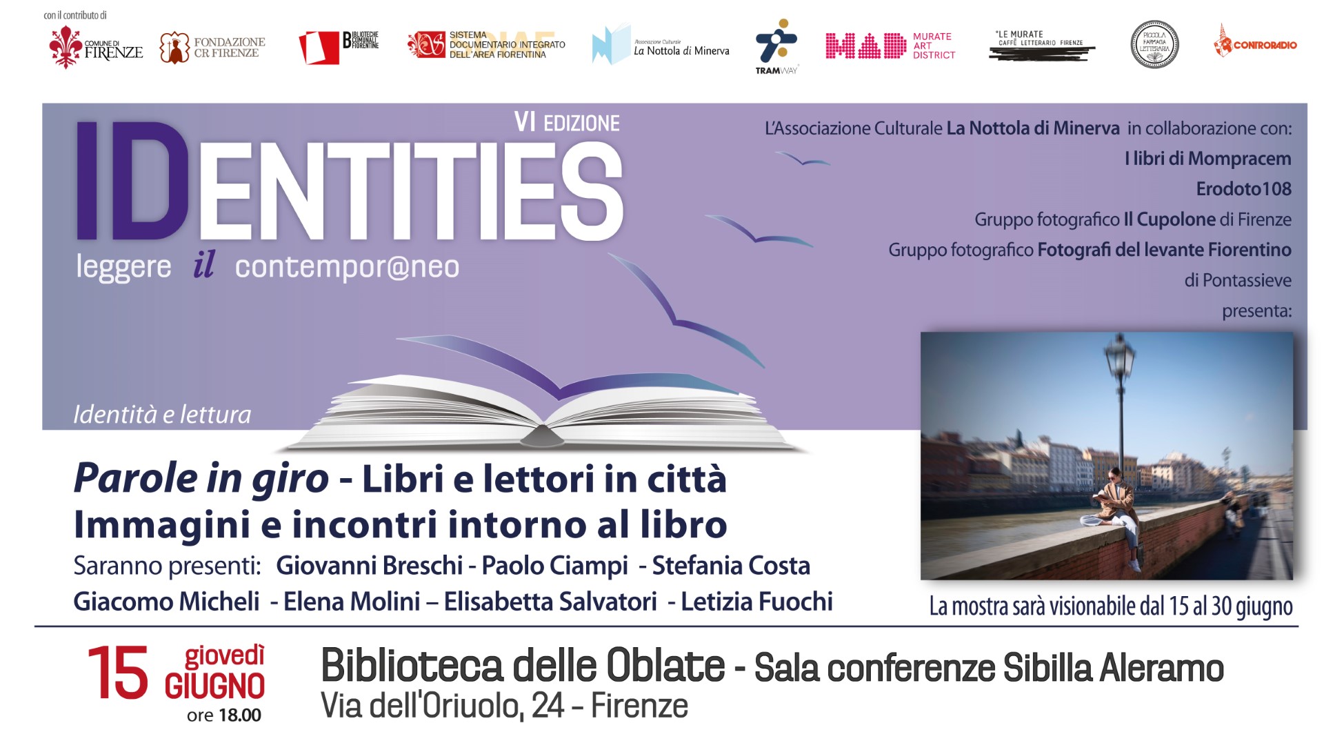 IDENTITIES. Leggere il contemporaneo è una rassegna triennale, giunta alla VI edizione, ideata e organizzata dall’associazione culturale La Nottola di Minerva, con il contributo del Comune di Firenze, della Fondazione CR Firenze e dello sponsor Tram di Firenze.
