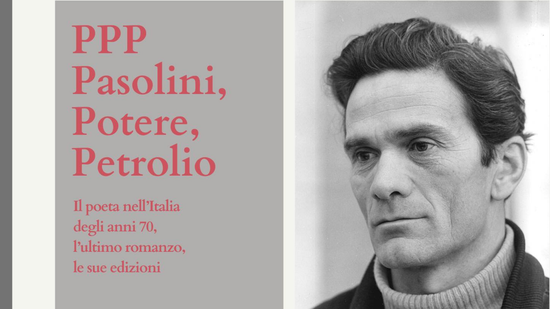 La Biblioteca delle Oblate ospiterà venerdì 13 maggio ore 15 il nuovo seminario di formazione offerto dall'Istituto Storico della Resistenza Toscano e dedicato agli insegnanti e alla cittadinanza dal titolo "PPP Pasolini, Potere, Petrolio. Il poeta nell’Italia degli anni 70, l’ultimo romanzo, le sue edizioni".