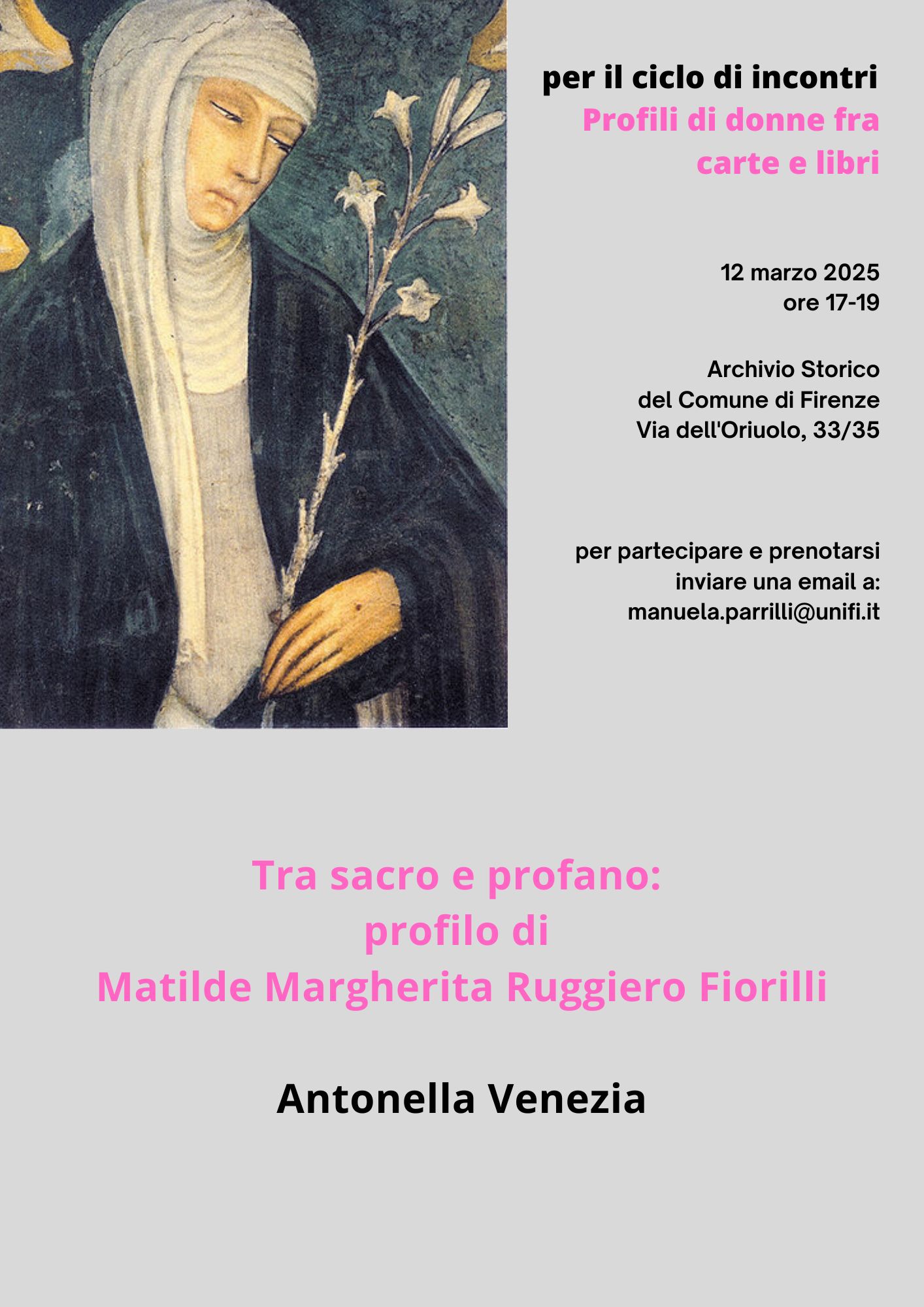 Per partecipare in presenza e online, inviare una email a manuela.parrilli@unifi.it.