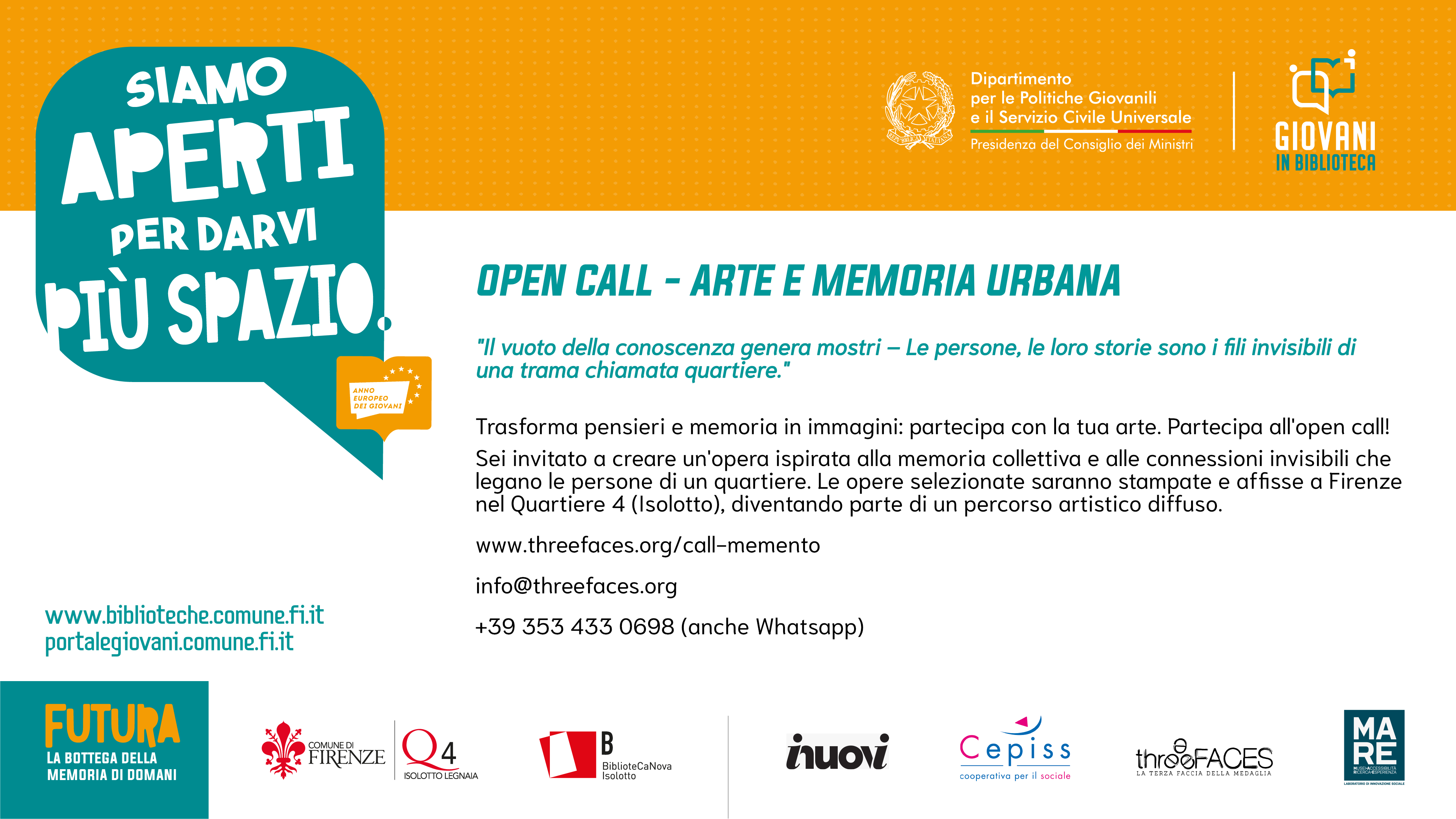 Per inviare la candidatura e ricevere maggiori informazioni, scrivere a info@threefaces.org