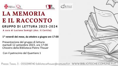 Martedì 12 settembre alle ore 17 presentazione del gruppo di lettura della Biblioteca Pietro Thouar