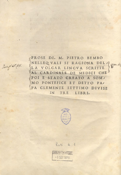 L’introduzione della stampa in Italia nel 1465 ha conseguenze culturali e linguistiche fondamentali. Nel Cinquecento, la diffusione dei testi a stampa implica l’esigenza di una norma linguistica condivisa, di cui si fanno interpreti, a Venezia, nei primissimi anni del secolo, il tipografo Aldo Manuzio e il filologo Pietro Bembo (1501-1502).