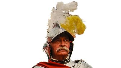 Il Capitano è protetto da corazza composta da gorgiera, pettorale, schienale e mezzi bracciali.