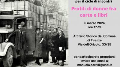 Mercoledì 27 marzo nuovo appuntamento con Profili di donne, il ciclo a cura dell'Archivio storico e dell'Università di Firenze