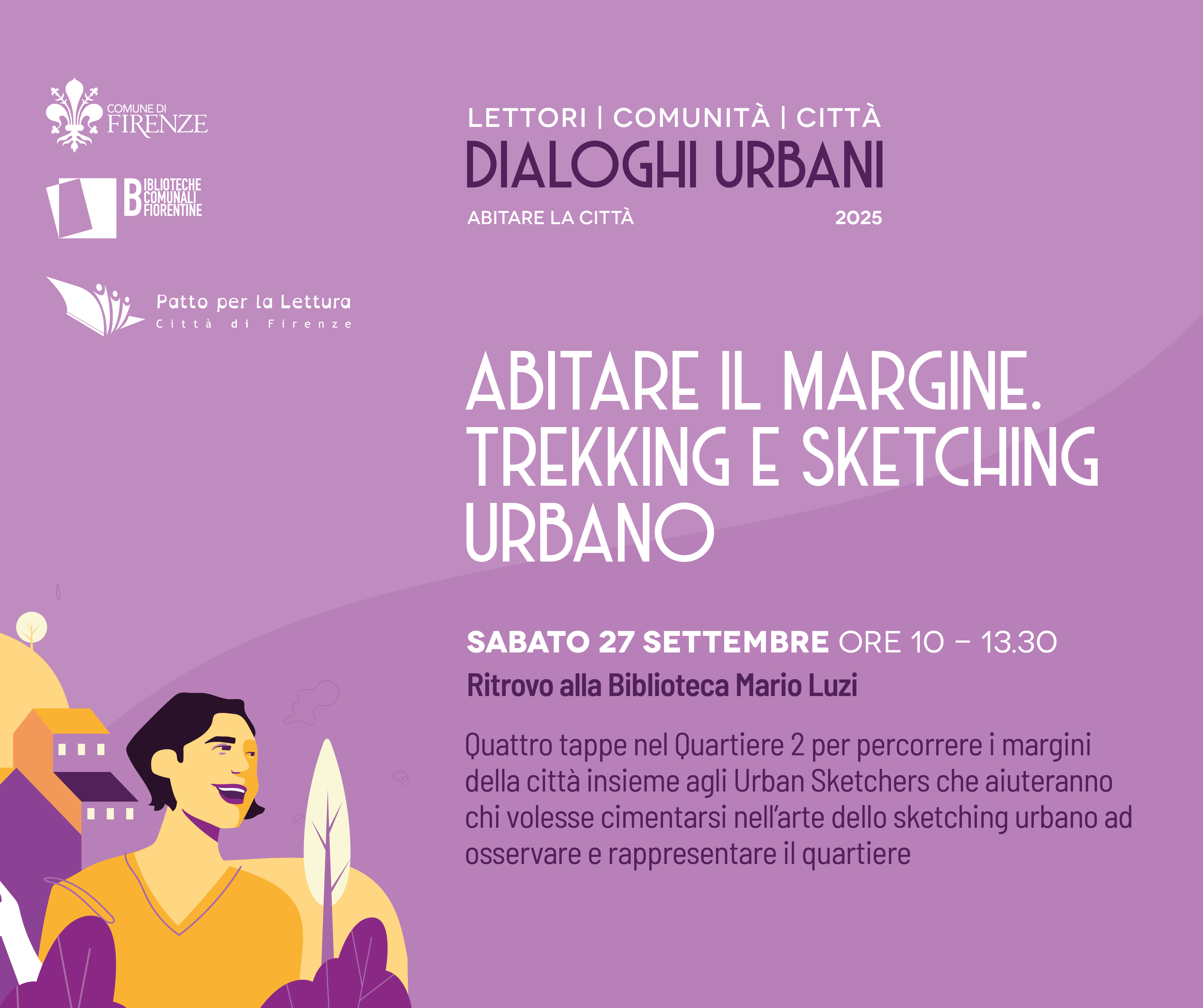Il trekking è il primo appuntamento della rassegna Dialoghi urbani curata dalle Biblioteche comunali fiorentine in collaborazione con la rete del Patto per la lettura, che unisce prospettive e voci diverse sul tema dello spazio urbano e della sua evoluzione.