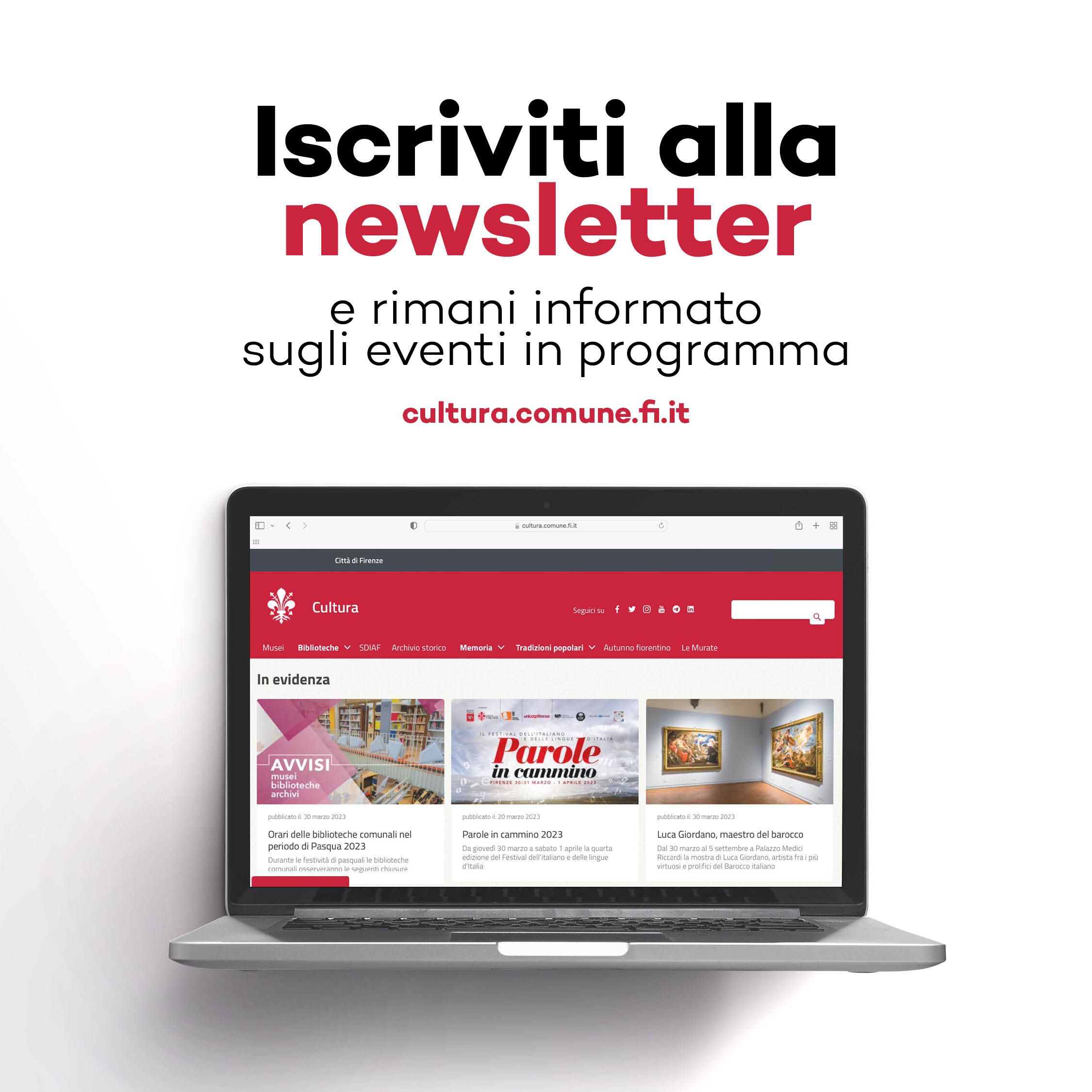 Iscriviti alla newsletter del Comune di Firenze per essere sempre aggiornato sulle mostre e gli eventi culturali in città, segui anche i nostri i canali social