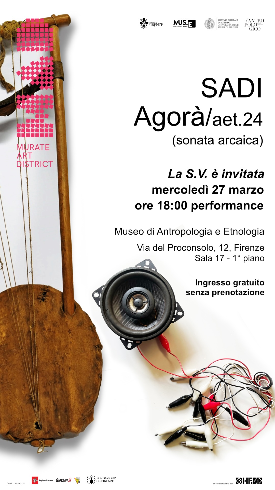 Il 27 marzo alle 18 al Museo di Antropologia e Etnologia, la performance a ingresso gratuito del sound artist SADI, parte del progetto Agorà
