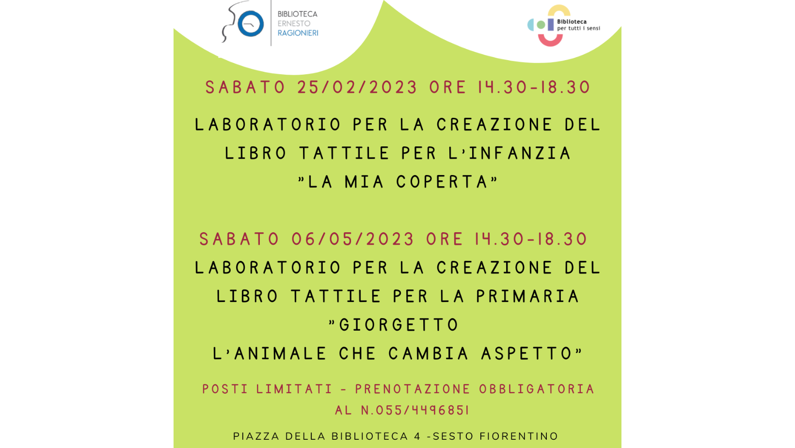 Gli incontri sono gratuiti ma essendo a numero chiuso chiediamo di effettuare la prenotazione a questo link: https://www.bibliosestoragazzi.it/eventi/