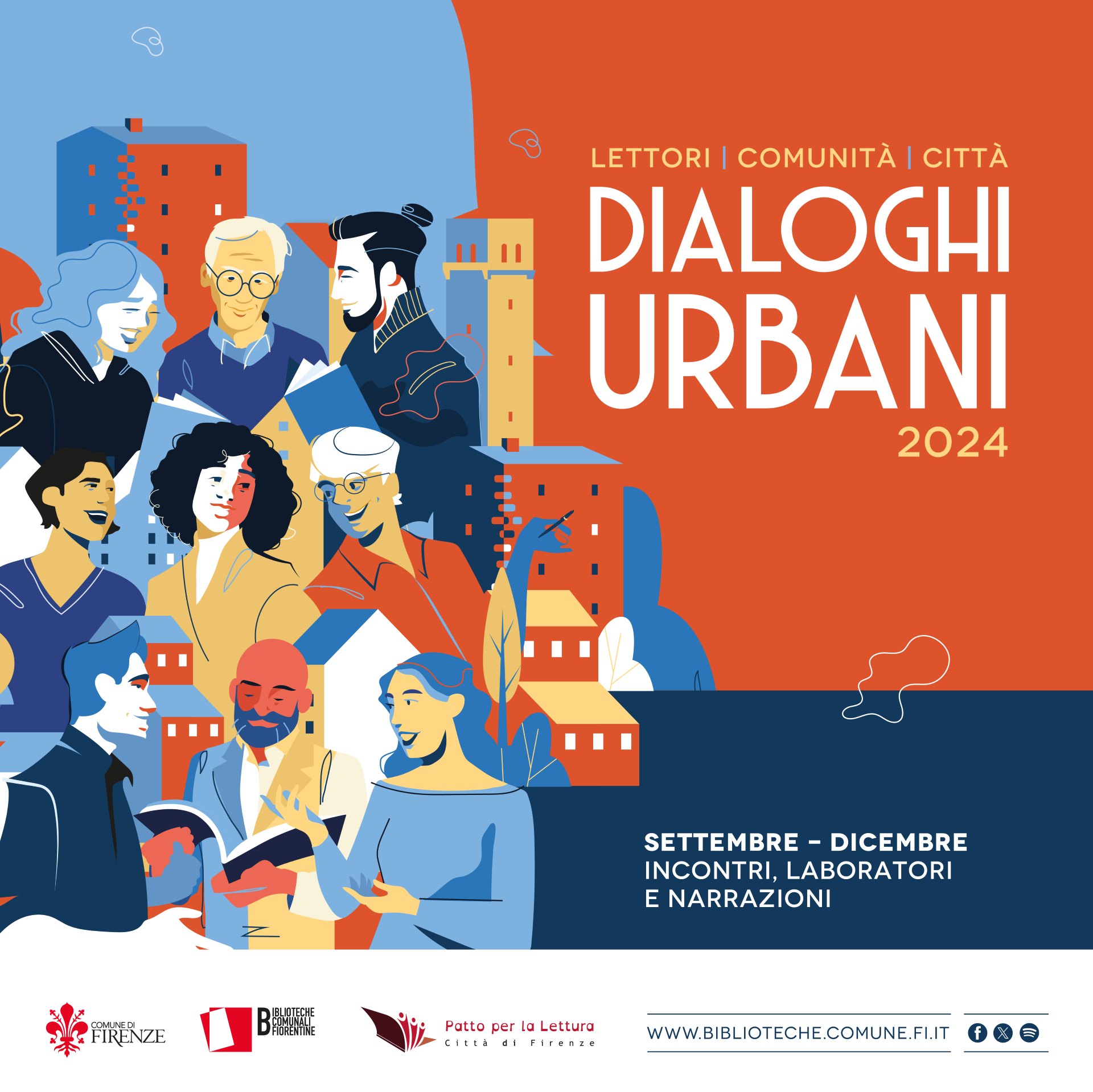 Spazio anche per i consigli di lettura. Il 16 novembre alla Biblioteca Villa Bandini verranno illustrati i titoli di libri che arricchiscono la biblioteca pop up dei Dialoghi urbani ospitata in biblioteca per la durata della rassegna e della bibliografia tematica redatta insieme tra biblioteche e librerie della città. La bibliografia, allegata al programma, raccoglie libri disponibili per il prestito nelle Biblioteche comunali fiorentine che è possibile richiedere anche tramite il prestito interbibliotecario. Per over 65, persone non autosufficienti, con disabilità e per coloro che hanno difficoltà, anche temporanea, a recarsi in biblioteca è possibile richiedere il prestito a domicilio. Alcuni dei titoli suggeriti sono disponibili in formato digitale su DigiToscana MediaLibraryOnLine (MLOL).