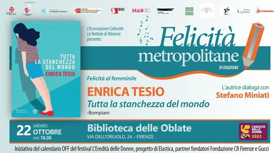 Nell'ambito della rassegna "Felicità Metropolitane", l'Associazione culturale La Nottola di Minerva presenta il libro di Enirca Tesio "Tutta la stanchezza del mondo" edito da Bompiani.