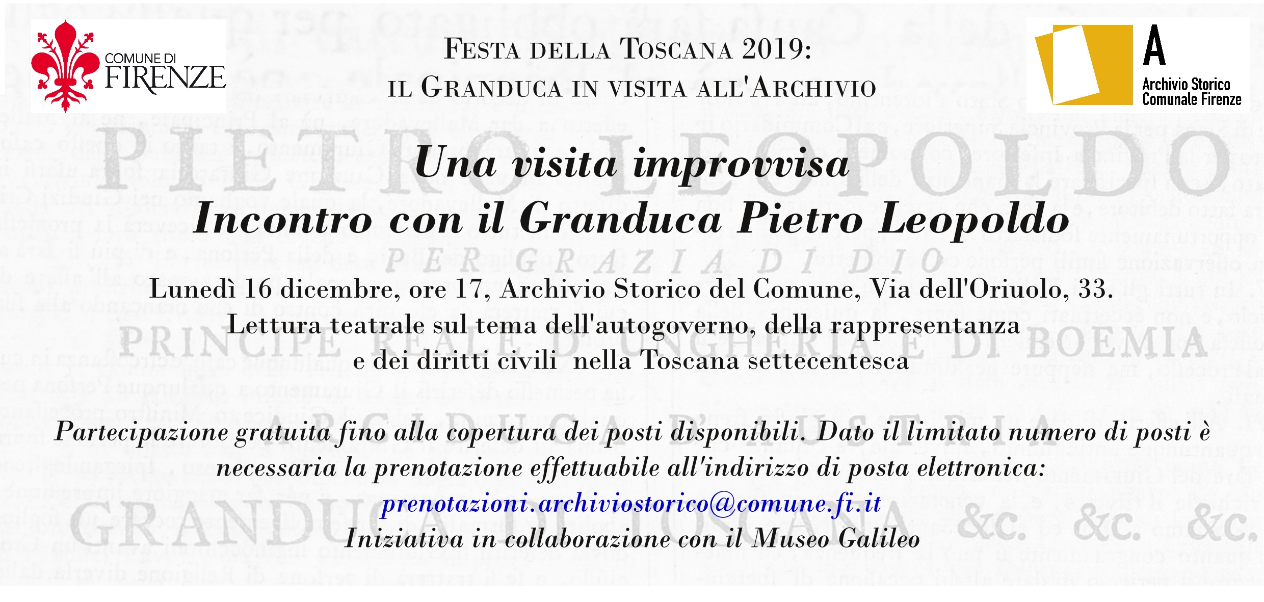 Lettura teatralizzata sul tema dell'autogoverno, della rappresentanza e dei diritti civili nella Toscana settecentesca in occasione della Festa della Toscana 2019. Lunedì 16 dicembre, ore 17, Archivio Storico del Comune, Via dell'Oriuolo, 33.