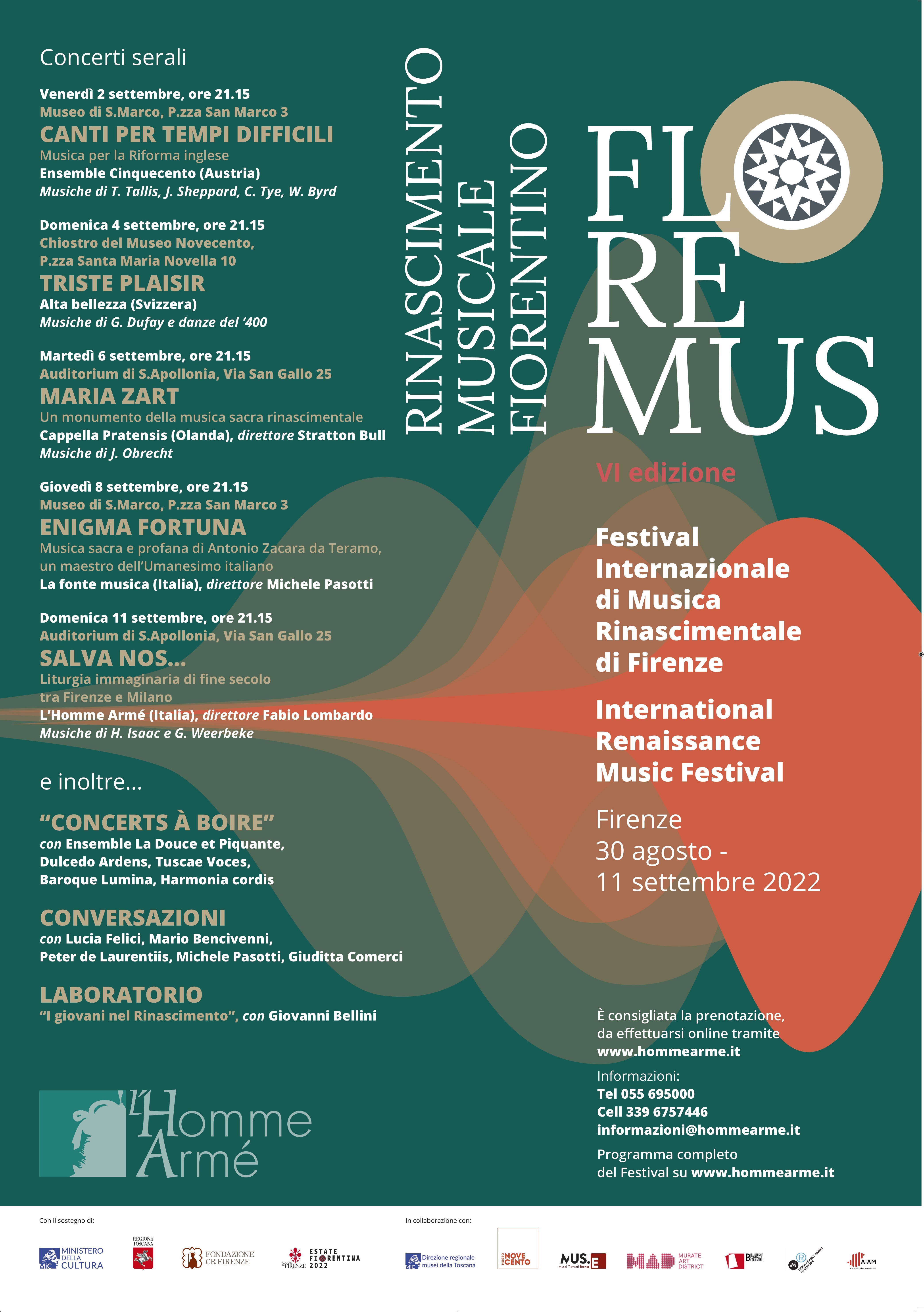 Prenotazioni: direttamente sul sito https://hommearme.it/ (dove si troverà il calendario completo degli eventi; solo per informazioni e non per prenotazioni: informazioni@hommearme.it)
