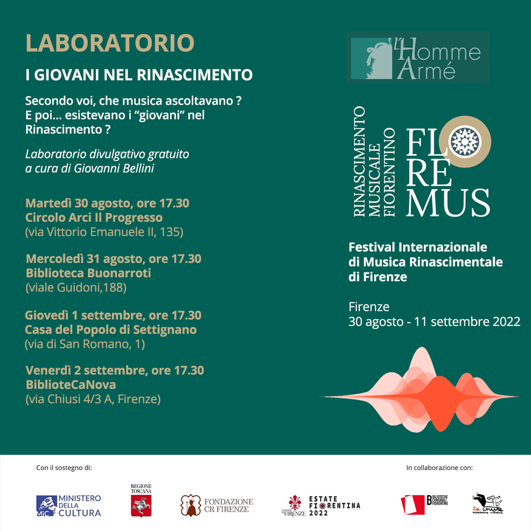 FloReMus è il primo festival interamente dedicato alla musica del Quattro-Cinquecento collocato nella città che ha maggiormente influito sulla cultura rinascimentale nelle sue varie sfaccettature: artistico-visive, letterarie, musicali, filosofiche, scientifiche e politiche; rinascimentali sono anche i luoghi dei concerti serali (ore 21.15) e di quasi tutti i concerts à boire (ore 19); l’intento è quello di stabilire un’interazione fra la musica eseguita e l’ambiente che la ospita, cosicché lo spettatore fruisca in contemporanea di prodotti artistici che in contemporanea nacquero, quando non in simbiosi. Si prosegue l’esplorazione del vasto repertorio tardo medievale e rinascimentale con speciale attenzione al Quattrocento; un periodo di grandi movimenti politici, sociali, scientifici e artistici, musica inclusa, che presenta molte analogie con quella contemporanea.