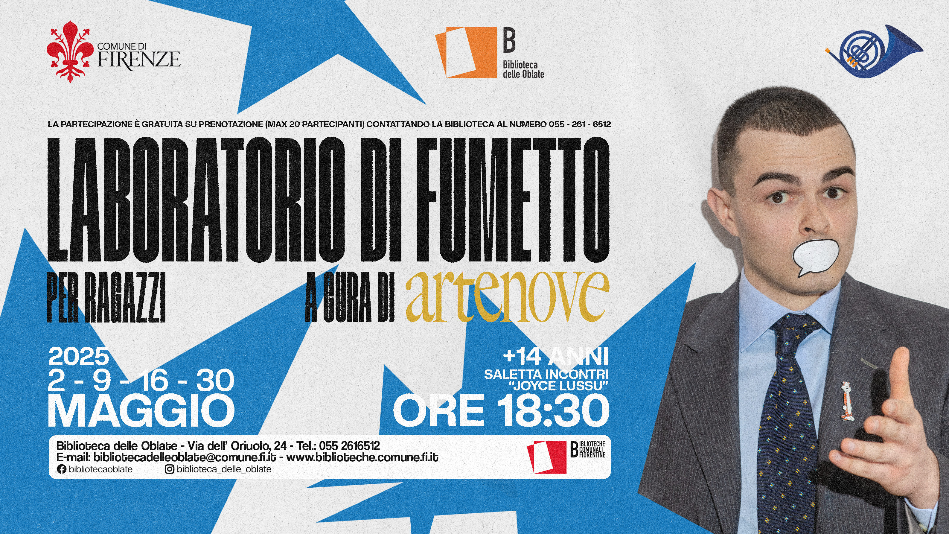 La partecipazione è gratuita contattando la Biblioteca al numero 055 2616512 o scrivendo a bibliotecadelleoblate@comune.fi.it