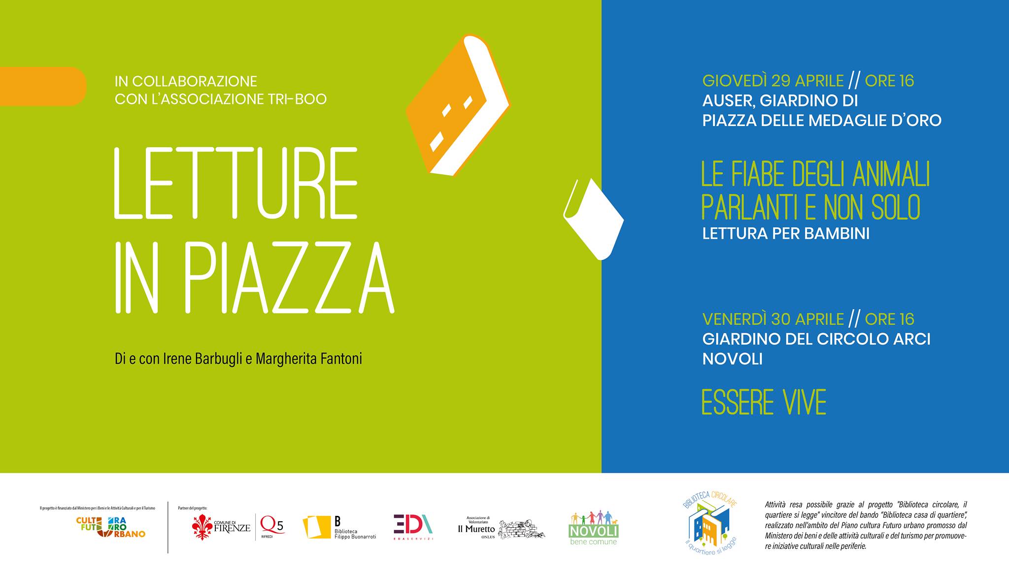 "Letture in piazza" è realizzato nell'ambito di "Biblioteca circolare. Il quartiere si legge", progetto vincitore del bando “Biblioteca casa di quartiere” realizzato nell’ambito del Piano “Cultura Futuro Urbano” promosso dal Ministero dei beni e delle attività culturali e del turismo per promuovere iniziative culturali nelle periferie.