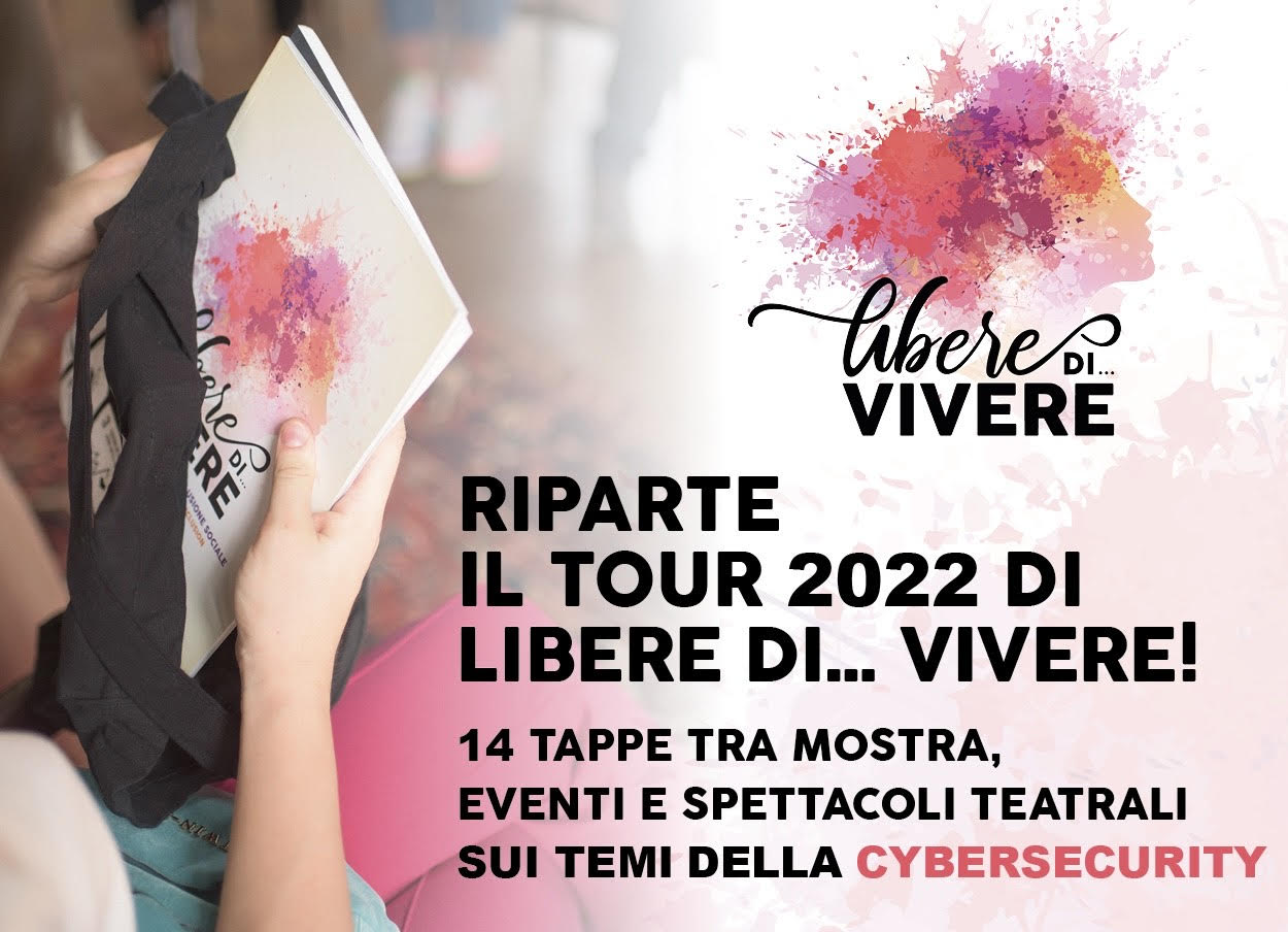 Il Tour 2022 di Libere di... VIVERE proseguirà da aprile sino a novembre, incontrando cittadinanza, scuole, famiglie e istituzioni tappa dopo tappa. Dopo Firenze saremo a Viterbo, Fiumicino, Lecce, Torre del Greco, Napoli, Bellagio, Perugia, Sassari, Courmayeur, Agrigento, Ragusa per terminare a Milano dal 16 al 18 novembre.