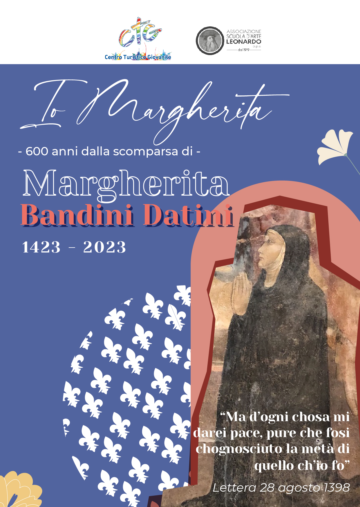 “Io Margherita, 600 anni dalla scomparsa di Margherita Bandini Datini, 1423 – 2023” è il titolo di una serie di incontri che approfondiscono la figura di una donna tra Tre/Quattrocento nel contesto del suo tempo ma anche molto attuale oggi, tra confini sociali e emancipazione, istruzione e lavoro femminile, società mercantile e relazioni familiari.