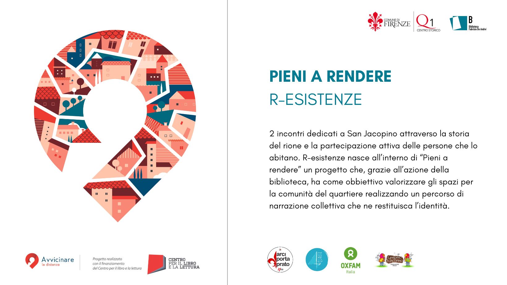 R-esistenze nasce all’interno di “Pieni a rendere” un progetto che, grazie all’azione della biblioteca, ha come obbiettivo valorizzare gli spazi per la comunità del quartiere realizzando un percorso di narrazione collettiva che ne restituisca l’identità.