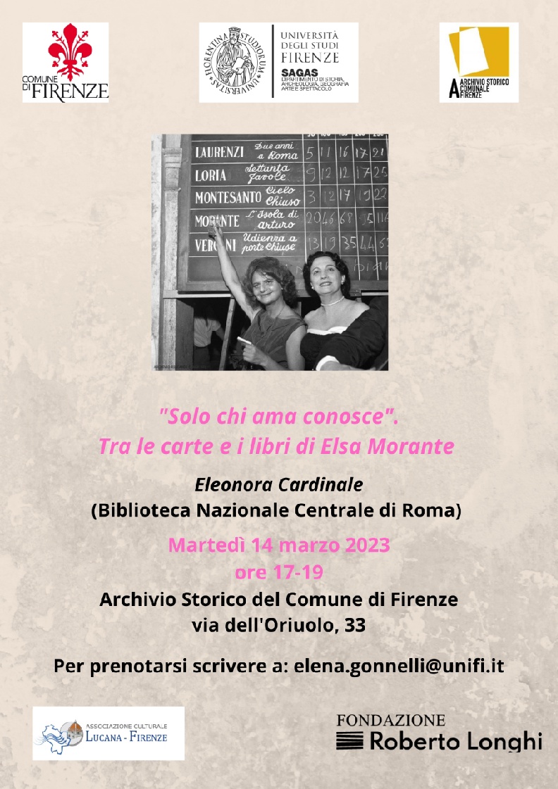 Prosegue il ciclo "Profili di donne fra carte e libri" organizzato dall'università di Firenze in collaborazione con l'Archivio Storico del Comune, l'Associazione Culturale Lucana Firenze e la Fondazione Longhi.