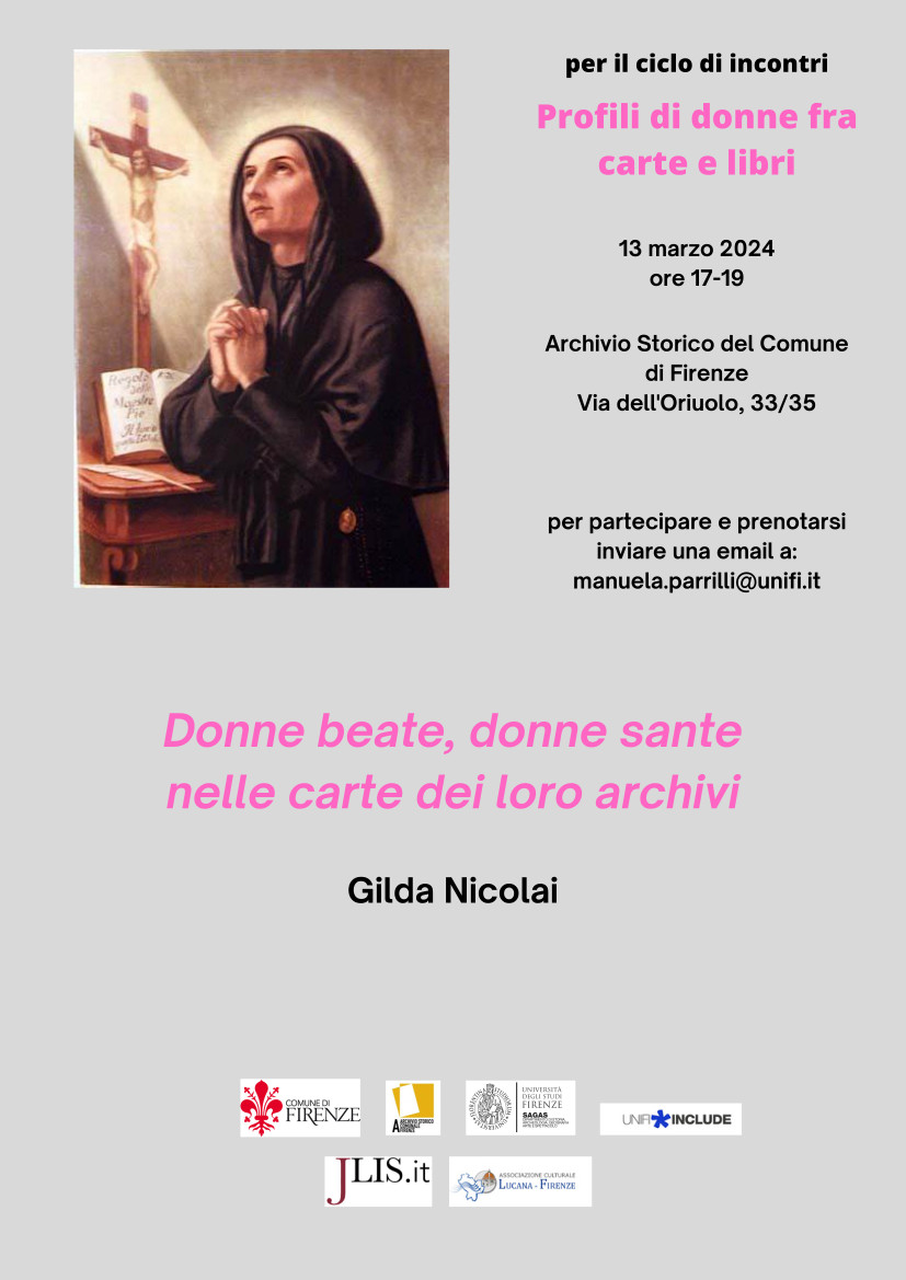 Mercoledì 13 marzo, per il ciclo a cura dell'Archivio Storico e dell'Università di Firenze, nuovo appuntamento con Gilda Nicolai