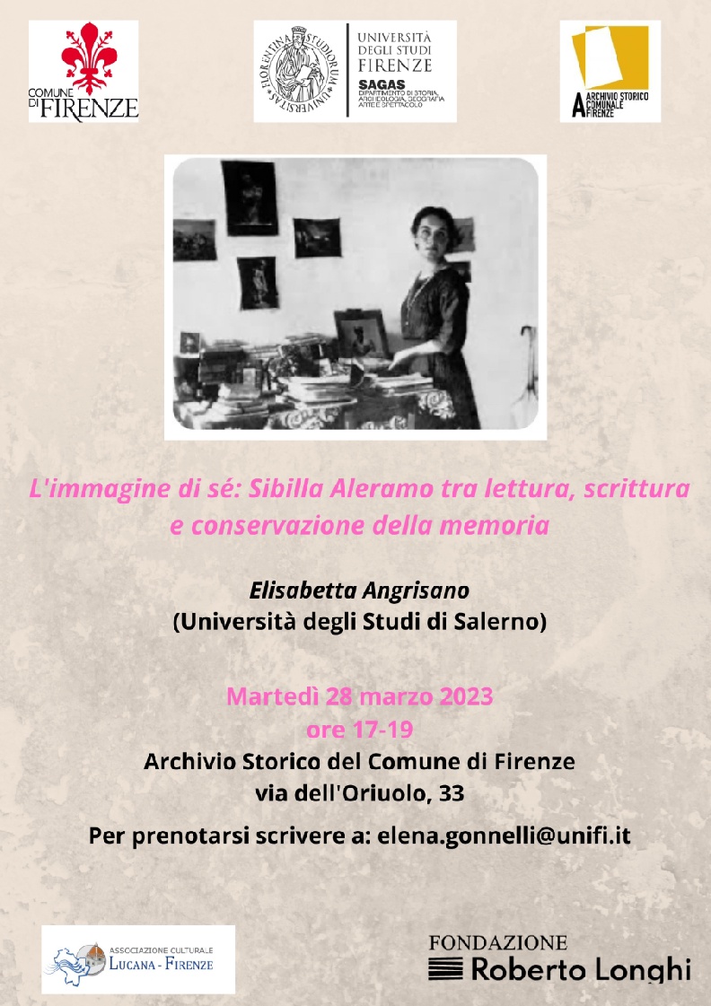 L'immagine di sè: Sibillia Aleramo, tra lettura, scrittura e conservazione della memoria, relatrice dell'incontro sarà Elisabetta Angrisano (Università degli Studi di Salerno).