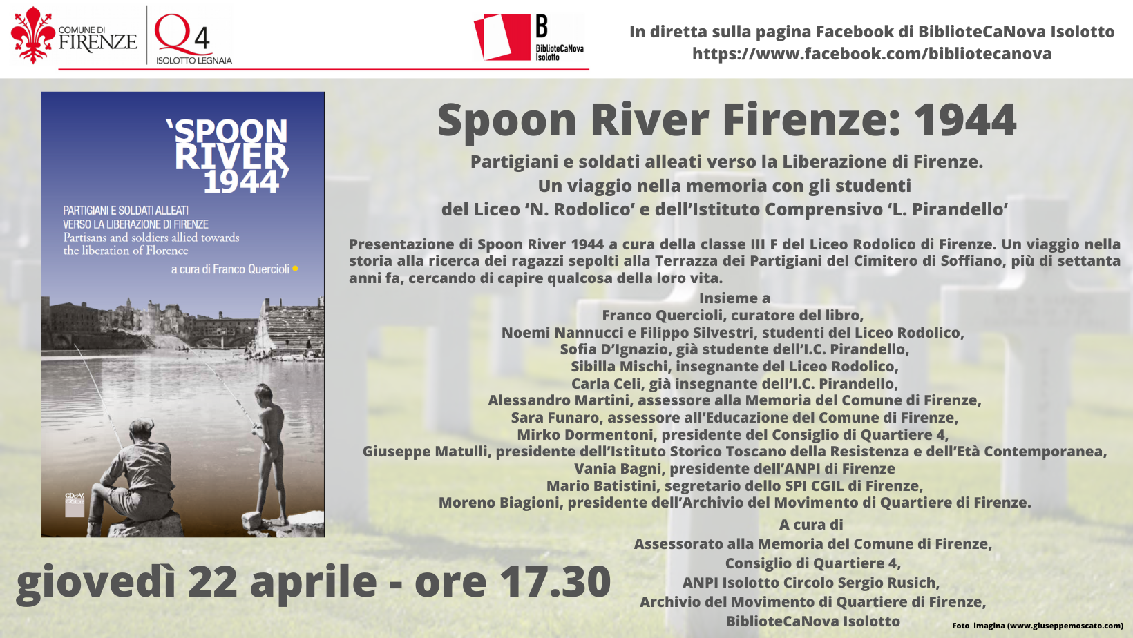 Giovedì 22 aprile alle ore 17.30 BiblioteCaNova Isolotto presenta il volume "Spoon River 1944. Partigiani e soldati alleati verso la Liberazione di Firenze" a cura di Franco Quercioli