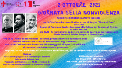 Sabato 2 ottobre a BiblioteCaNova Isolotto un programma di iniziative per celebrare la Giornata mondiale della non violenza