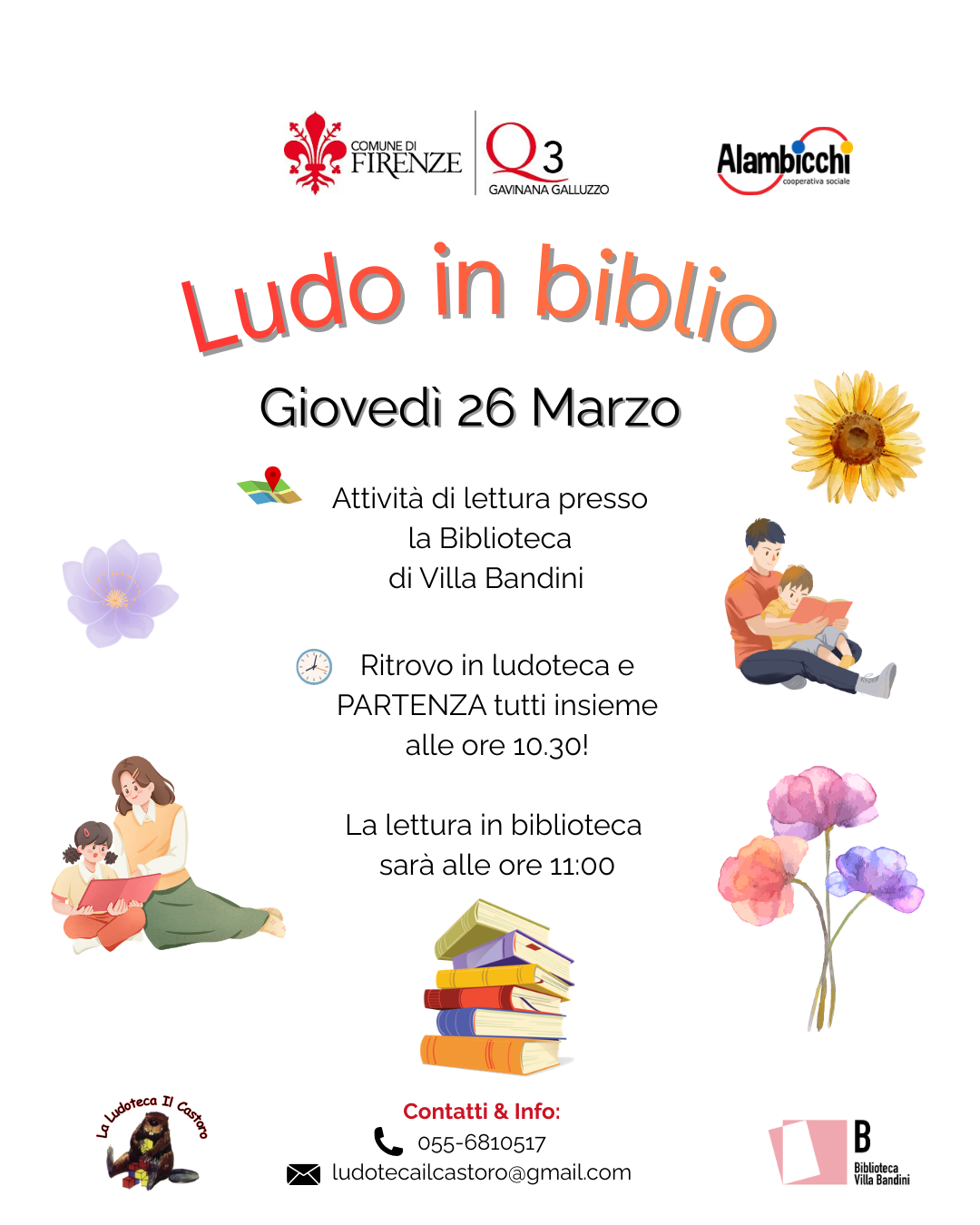 Per informazioni contattare telefonicamente il numero 055-6810517 o via mail a ludotecailcastoro@gmail.com