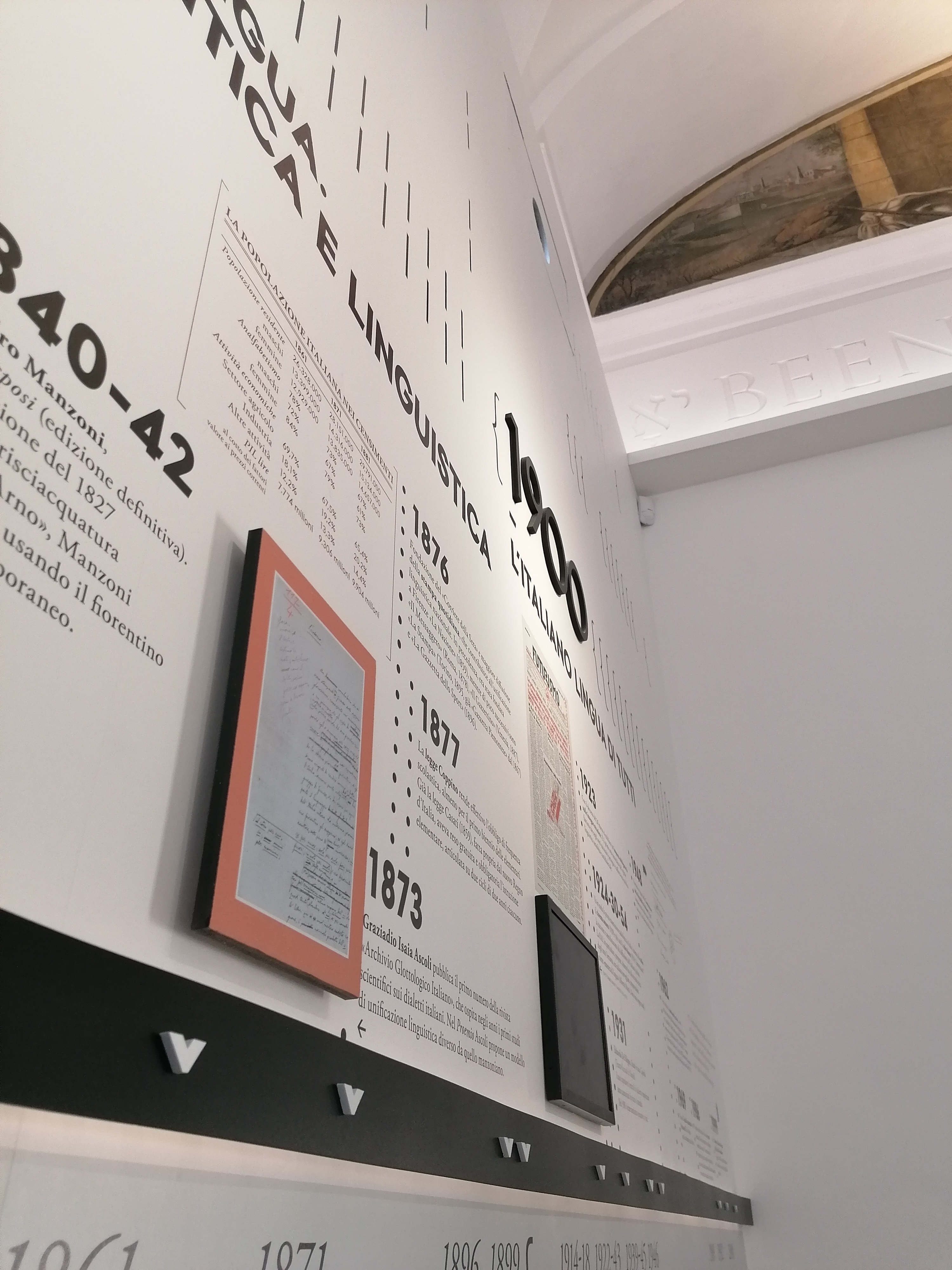 La mostra è un’anteprima del museo che aprirà in forma definitiva nel 2023. Vi si anticipano temi fondamentali della storia linguistica italiana attraverso postazioni multimediali e preziosi documenti provenienti da musei, archivi e biblioteche di diverse parti d’Italia.