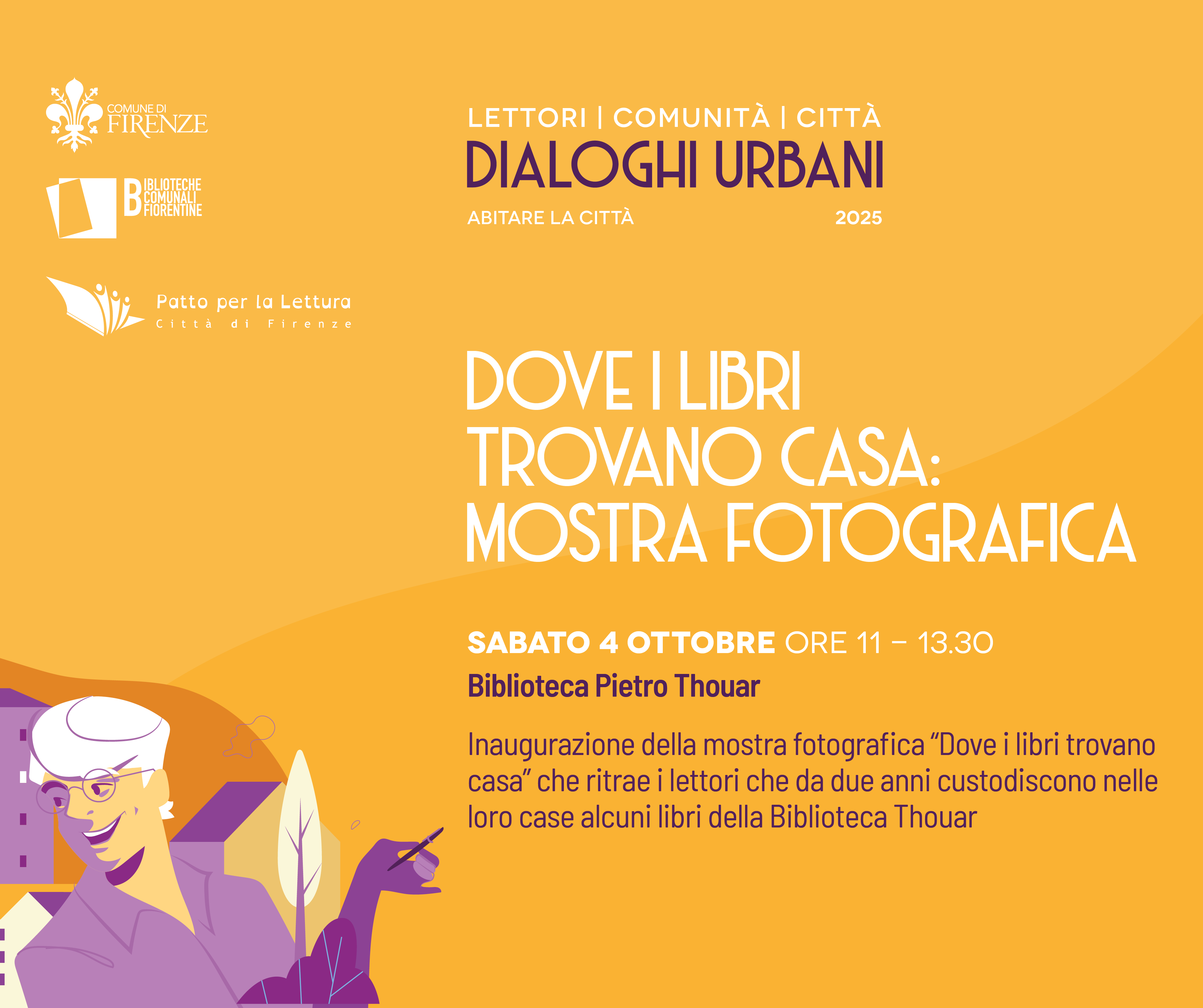 L'incontro fa parte della rassegna Dialoghi urbani curata dalle Biblioteche comunali fiorentine in collaborazione con la rete del Patto per la lettura, che unisce prospettive e voci diverse sul tema dello spazio urbano e della sua evoluzione