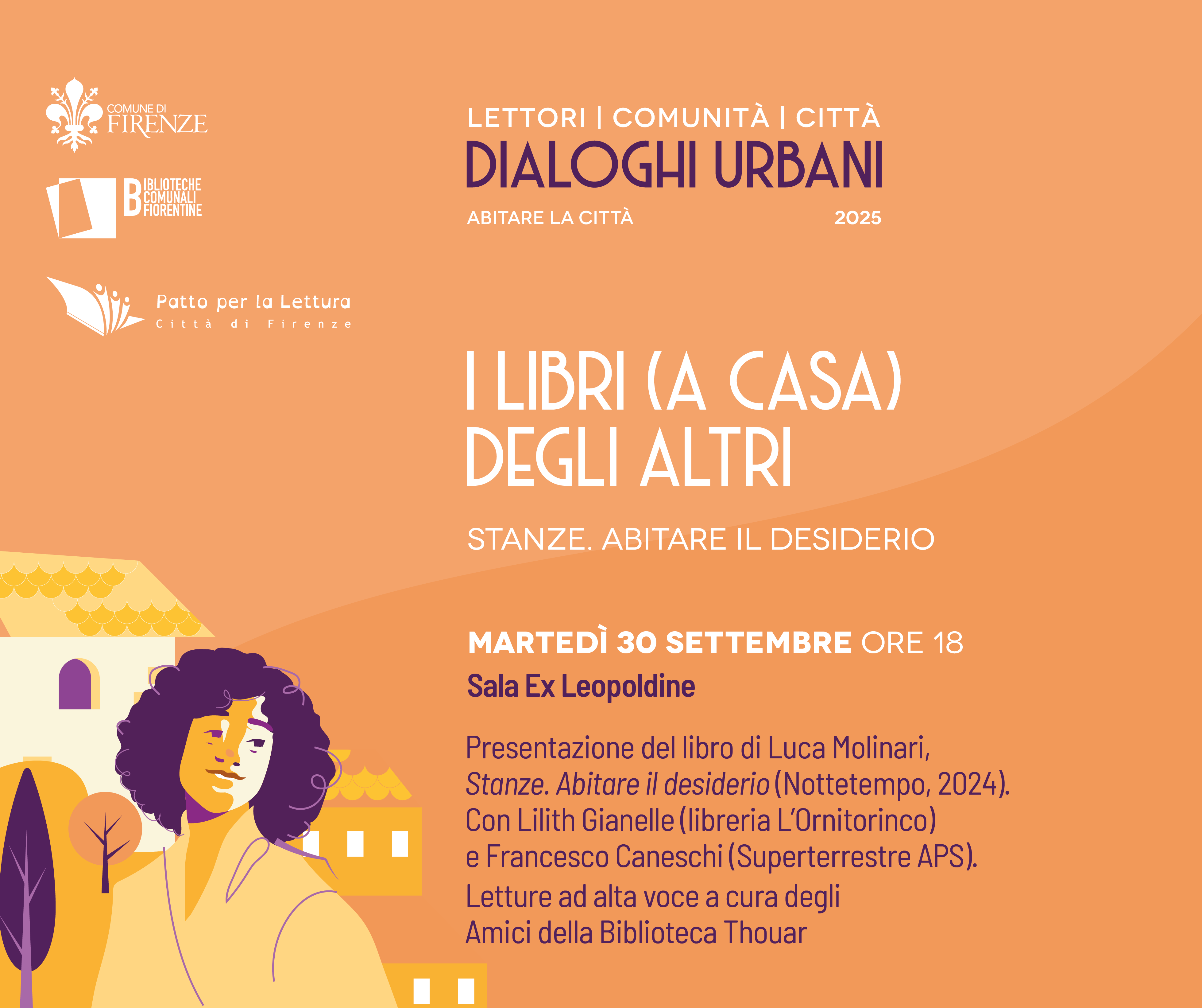 L'incontro fa parte della rassegna Dialoghi urbani curata dalle Biblioteche comunali fiorentine in collaborazione con la rete del Patto per la lettura, che unisce prospettive e voci diverse sul tema dello spazio urbano e della sua evoluzione.