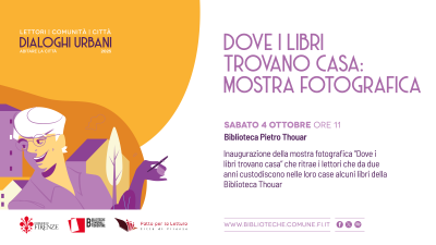 Nell'ambito della rassegna Dialoghi Urbani, dal 25 ottobre al 9 novembre alla Biblioteca Palagio di Parte Guelfa una mostra fotografica ritrae i lettori che custodiscono in casa alcuni libri della biblioteca Pietro Thouar