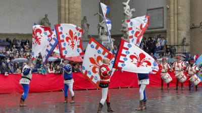 Il Trofeo Marzocco, l’emozionante gara di sbandieratori che ogni anno ci riporta nell’atmosfera delle tenzoni cavalleresche, vede sfidarsi, in piazza Signoria, gruppi storici di sbandieratori accompagnati dall’esibizione dei “Musici”, che conferiscono ancor più spessore alle eteree coreografie delle bandiere.